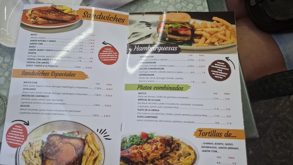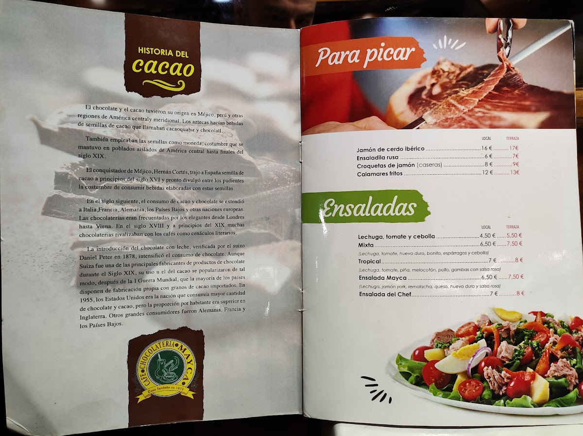 “ Hidden little gem, doesnt look like much from outside, however they have such Yummy and thick chocolate con churros and coffees. Great and friendly service, help yourself to free water from a filtered dispenser, toilettes have paper. Good selection of food as well. Popular place for family gatherings in stunning beautiful old palour. Next door is attached store selling home made speciality sweets. Bingo is between going down the steps, this is not Mayca... Muchas gracias! ”