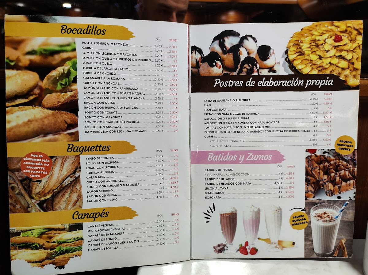 “ The best product is NATURAL pineapple/peach juice (4,20€). You don't see it in any other bar. Good place to eat chocolate with churros too. ”